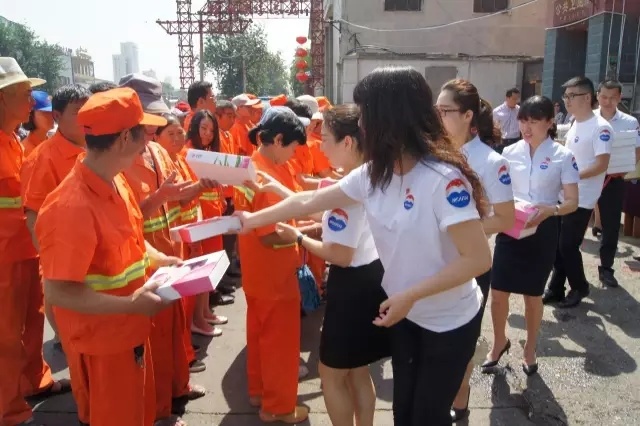 落實國酒茅台(貴州仁懷)營銷有(yǒu)限公司《關于2017年端午節市場(chǎng)活動方案的要求》,為(wèi)提升和(hé)豐富茅台品牌形象,在端午佳節來(lái)臨之際,以踐行(xíng)“立足茅台,奉獻社會(huì)”的責任理(lǐ)念,河南鈣源貿易有限公司認真組織端午節公益活動,5月26日上(shàng)午10點,河南鈣源貿易有限公司國酒茅台專賣店(diàn)在總經理(lǐ)王鳳振的帶領下到鄭州市金水(shuǐ)區(qū)人(rén)民路環衛站(zhàn),為(wèi)50多(duō)名環衛工送去粽子、毛巾、水(shuǐ)杯。