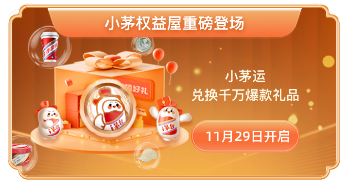 i茅台一年一度的“11·29一起i”年度品牌活動即将拉開(kāi)序幕,豐富多(duō)彩的活動、價值千萬的福利以及多(duō)項重磅權益将一一登場(chǎng),小(xiǎo)茅用心回饋、翹首以盼,期待親們參與!