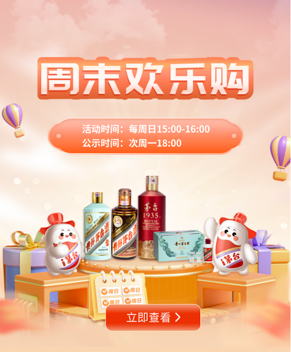 享受微風,i意陪伴。每個(gè)周末,小(xiǎo)茅就在i茅台迎候大(dà)家(jiā)~小(xiǎo)茅也将不斷努力,為(wèi)親們挑選更多(duō)美的産品上(shàng)線周末歡樂購,讓我們懷着對生(shēng)活的熱愛(ài)與期待,一起抛開(kāi)疲憊、感受歡樂,無論風雨或晴天,我們不見不散~