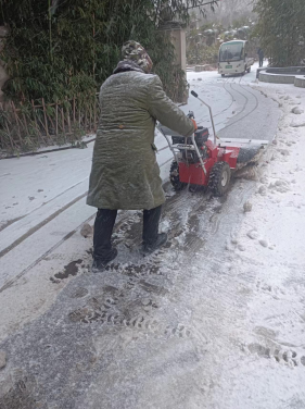 集團各企業以雪為(wèi)令、聞雪而動,上(shàng)下一心、迅速出擊,第一時(shí)間(jiān)啓動應急預案,采取應對措施,落實服務保障人(rén)員及物資。幹部職工堅守崗位,掃雪除冰、疏通(tōng)道(dào)路、檢查設施設備,重點對彎道(dào)、坡路、入口處等關鍵位置進行(xíng)預防清理(lǐ);堅持24小(xiǎo)時(shí)值班值守,應急救援小(xiǎo)組不間(jiān)斷巡視(shì),加大(dà)巡查力度,及時(shí)處理(lǐ)突發情況,謹防積雪壓垮風險;通(tōng)過工作(zuò)群進行(xíng)安全宣傳教育,提醒幹部職工關注路面濕滑結冰情況,合理(lǐ)安排出行(xíng),注意人(rén)身及交通(tōng)安全。