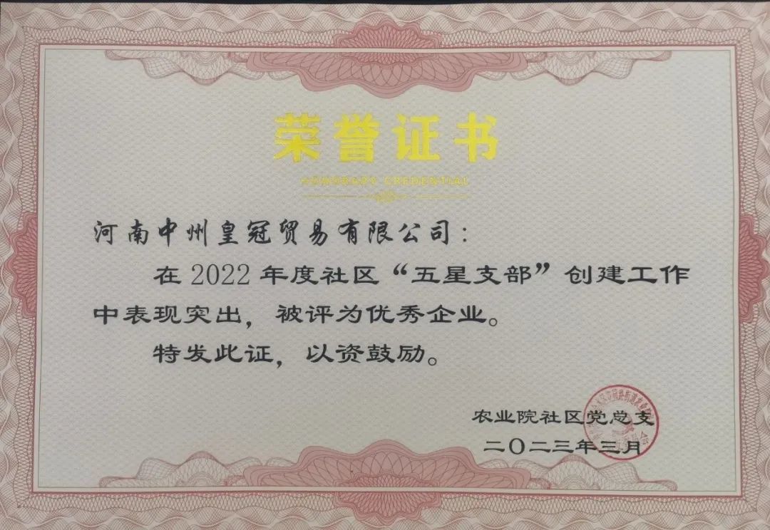 2023年3月31日,河南鈣源貿易有限公司受邀參加花(huā)園路街(jiē)道(dào)農業院社區(qū)第七季“身邊的感動——總有(yǒu)一款适合你(nǐ) 總有(yǒu)一個(gè)感動你(nǐ)”頒獎典禮,在2022年度社區(qū)“五星支部”創建工作(zuò)評選中榮獲“優秀企業”稱号。