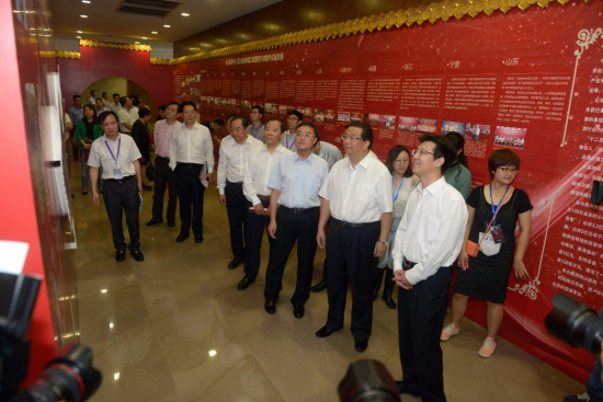 與會(huì)領導參觀助學活動成就展。大(dà)公報貴州傳真