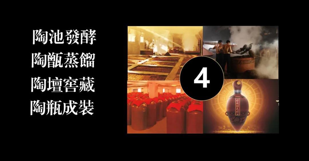 4——即彩陶坊天時(shí)酒的四陶工藝,陶池發酵、陶甑蒸餾、陶壇窖藏、陶瓶盛裝。