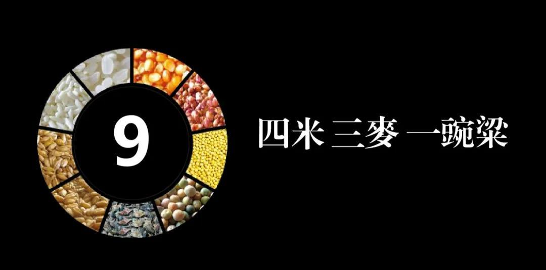 9——即彩陶坊天時(shí)酒是由九種糧食釀造而成。