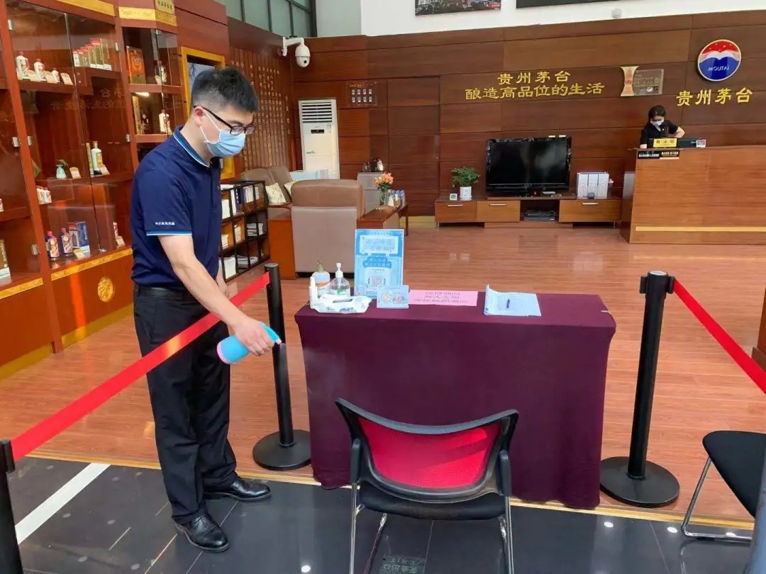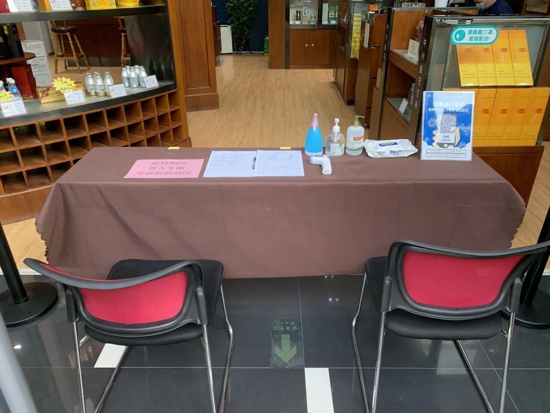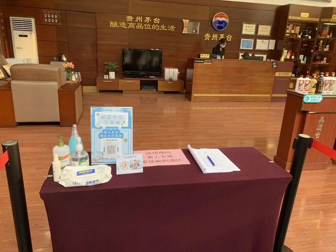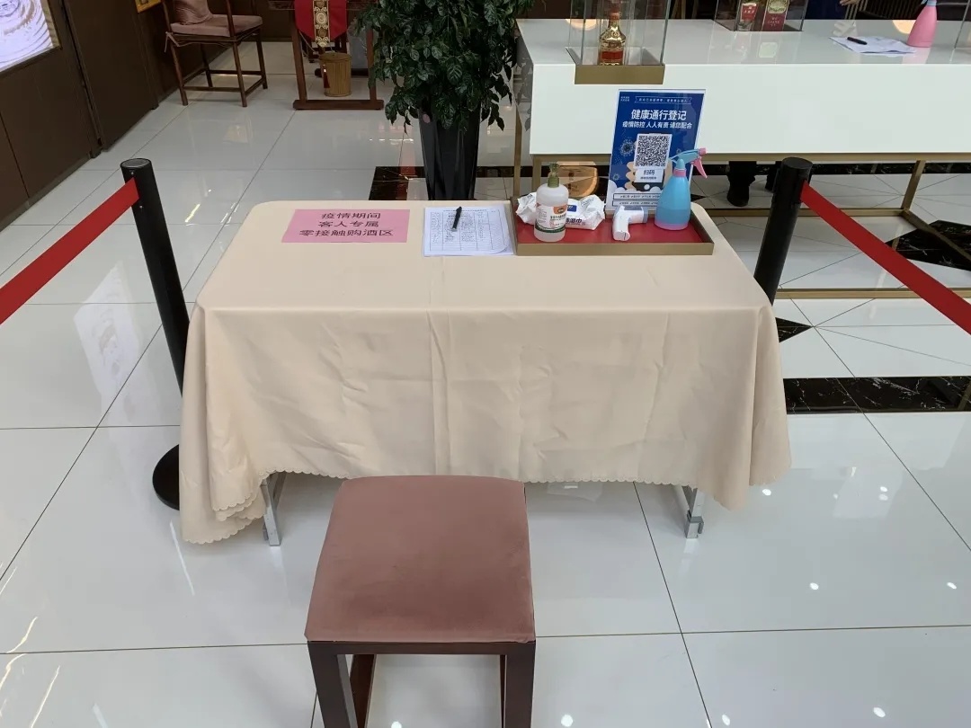 專賣店(diàn)用隔離帶劃分員工通(tōng)道(dào)與無接觸客戶購酒專用通(tōng)道(dào)。客戶若上(shàng)門(mén)辦理(lǐ)業務,隻需在門(mén)口掃碼付款,由業務員将商品送至隔離區(qū)域并進行(xíng)消毒,客戶自行(xíng)取貨。