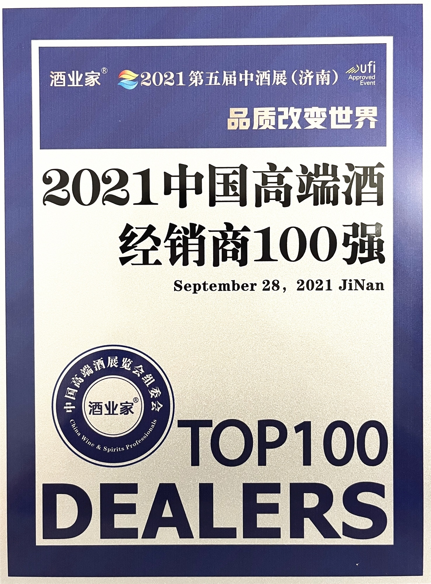 喜報||河南鈣源貿易有限公司榮獲2021年度中國“高(gāo)端酒經銷商100強”