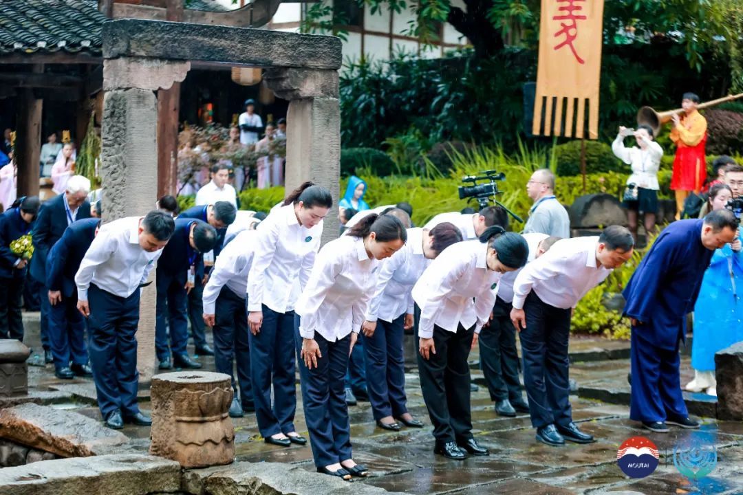 “我有(yǒu)嘉賓,鼓瑟吹笙,且歌(gē)且吟,鍾磬齊鳴”。美好時(shí)節款款而至,一場(chǎng)端午細雨與古韻茅台撞個(gè)滿懷,俨然一幅渾然天成的山(shān)水(shuǐ)畫(huà)卷。上(shàng)午8時(shí)27分,領導嘉賓們緩緩走進禮樂大(dà)道(dào)。禮樂之音(yīn),得(de)天地之和(hé);禮樂之行(xíng),見民風之美。在清脆悠揚的編鍾禮樂聲中,茅台癸卯年(2023)端午大(dà)典正式拉開(kāi)帷幕。